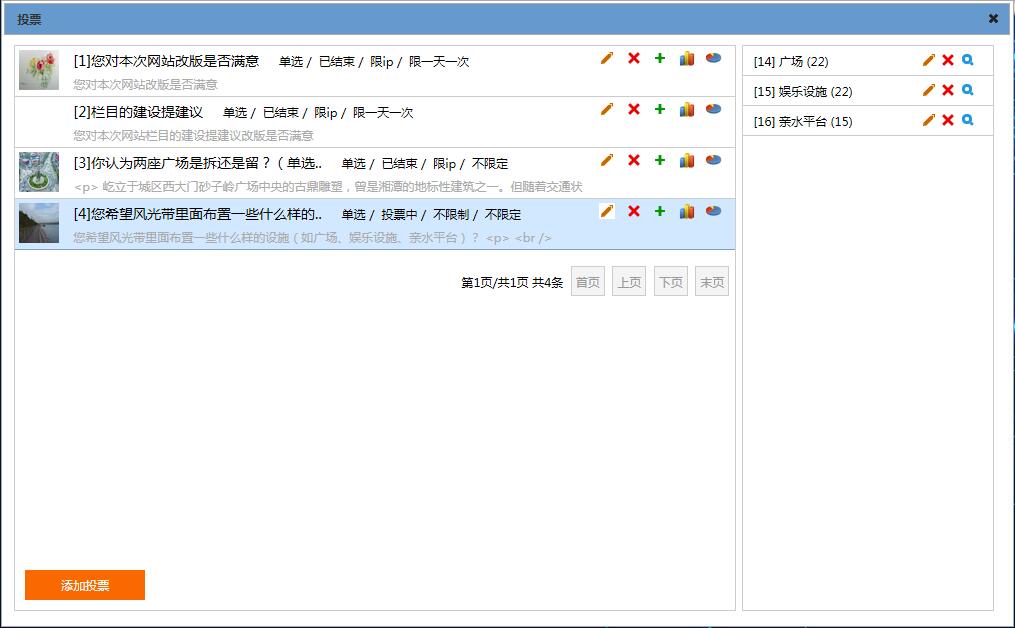 管理后臺投票列表界面