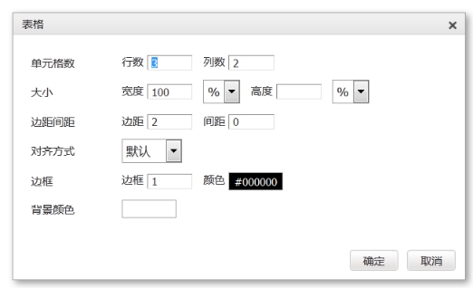 3) 行數(shù)、列數(shù)、邊距間距、對齊方式、邊框色、背景色按實際需要進行選擇即可。