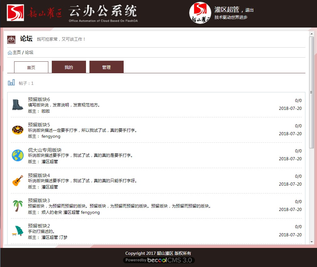 板塊、板塊置頂、禁用帖子、發(fā)帖、帖子、點(diǎn)贊與反對、回帖、我的、刪除帖子、我的管理、添加板塊、查看板塊。 |