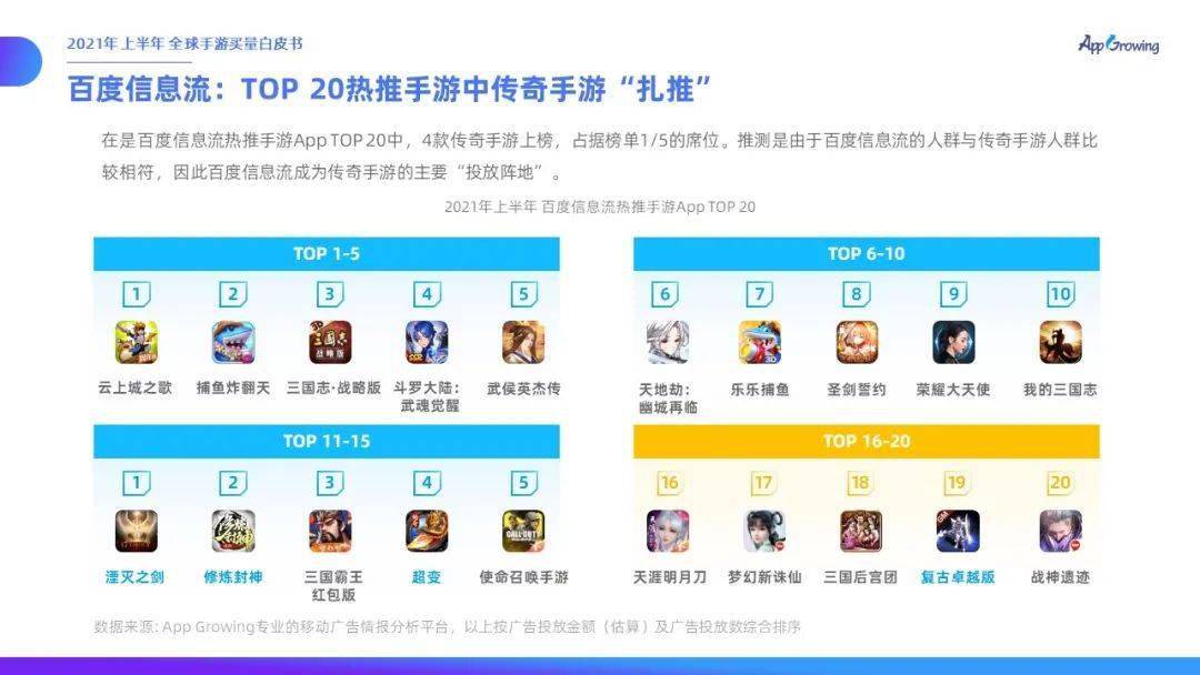 傳奇手游熱推榜前20中,共有10款新投放手游上榜,傳奇手游的玩家忠誠度較高,雖然是新手游但是畫面風(fēng)格及玩法跟舊版游戲相似度較高。