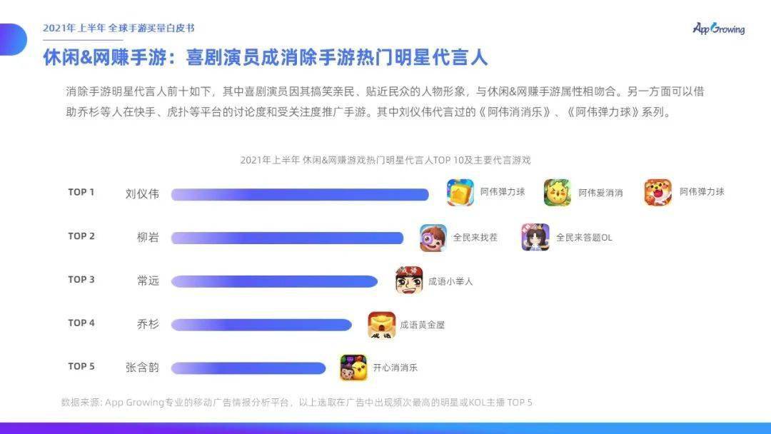 選取2021年上半年的重點投放風(fēng)格休閑&網(wǎng)賺、模擬、戰(zhàn)爭、三國、傳奇、魔幻、二次元,分析其明星代言人、熱門文案套路及熱門素材。